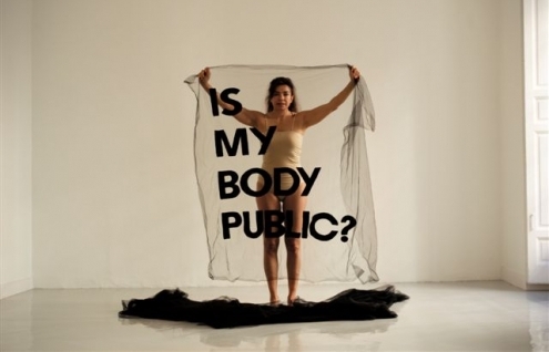 The exhibition consists of the new work Is My Body Public?, a fashion collection and performance and Room of Changes, in which technology is used to bring people together. In both multidisciplinary works Framis invites her audience to participate.