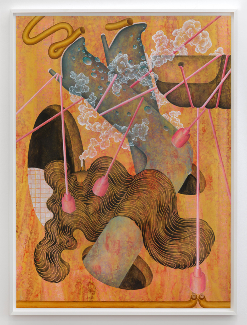 Both artists employ a visual language rooted in Surrealism, while remaining strongly connected to the present. Working with diverse materials and in a collage-like manner, they both use fragmented bodies and cartoonish elements, heavily influenced by digital image culture. Beneath this playful surface, Bray and Liu probe the darker sides of digitalisation’s impact on human beings, the body, and society.