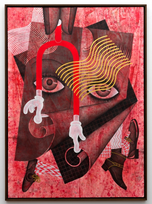 PINK SLIME CAESAR SHIFT continues with a series of paintings, which play with various slogans and images around the idea of feminine insurrection, literalizing various concepts around labor rights, (post)colonial East-West histories, and the introduction of synthetic DNA: C, G, A and T. Their diagrammatic quality as well as their ubiquitous feminine fingers originate in the nature of much industrial production today: women pushing buttons, swiping screens, maneuvering ever-smaller parts steadily progressing to the cellular. The suffering of modern workers is internal, pathogenic: workers are poisoned equally by scentless gaseous toxins - and Special Economic Zone laws that transform them from citizens to strangers in their own country, in an instant. However, bubbling and pocked surfaces can still be empowered and complex: no simple victim, these paintings are playful analogues for the rebellious body; femininity celebrated but subjugating, ridiculous but weaponized, all at the same time.