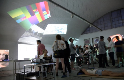 BYOB is an open-source exhibition concept created by artist Rafaël Rozendaal. The idea is simple: Find a venue, invite as many media artists and ask them to bring their own beamer to show their work. Th is will result in a dynamic one-night exhibition. During the evening and into the night, the international line-up is taken care of by the collective Glitch404.